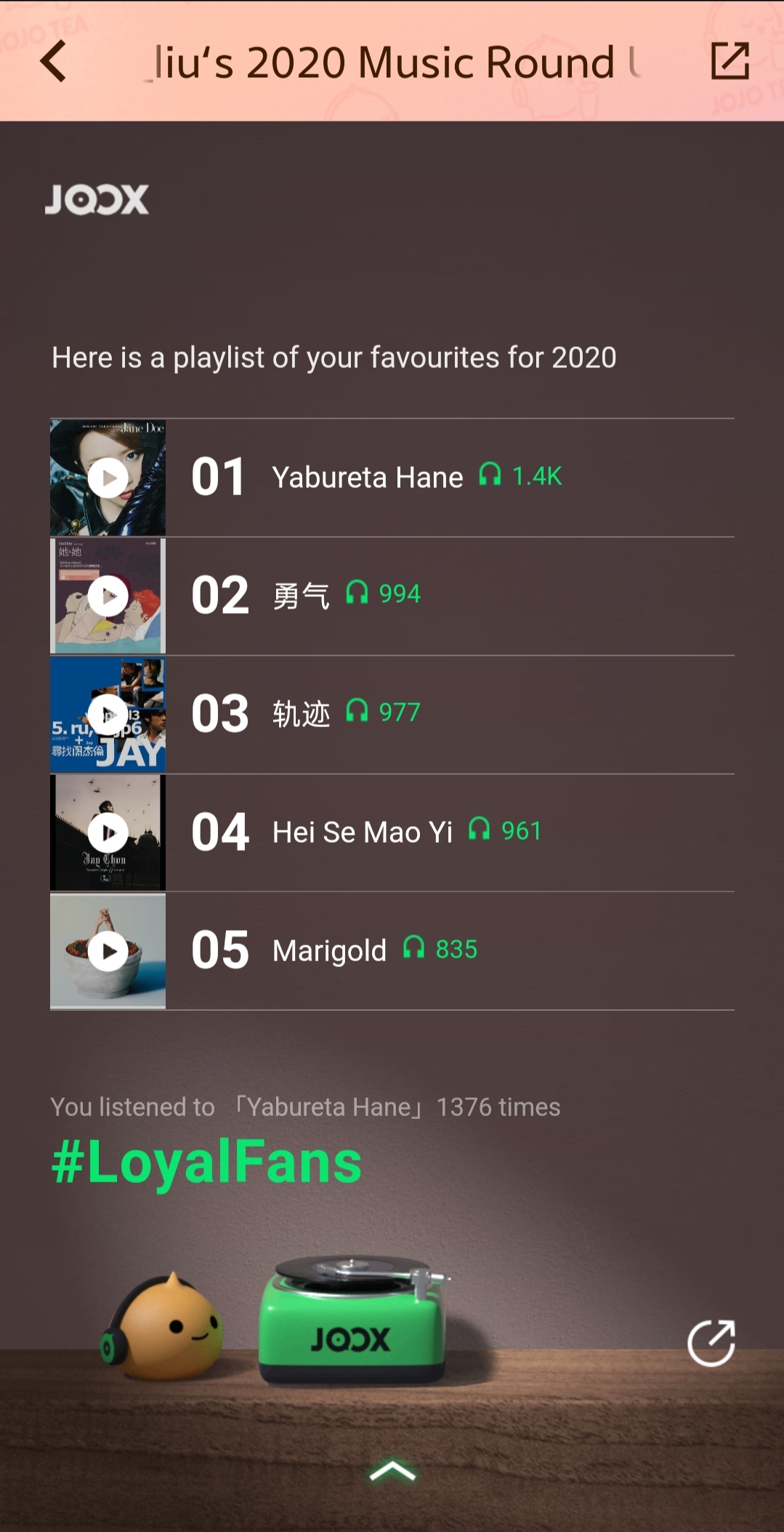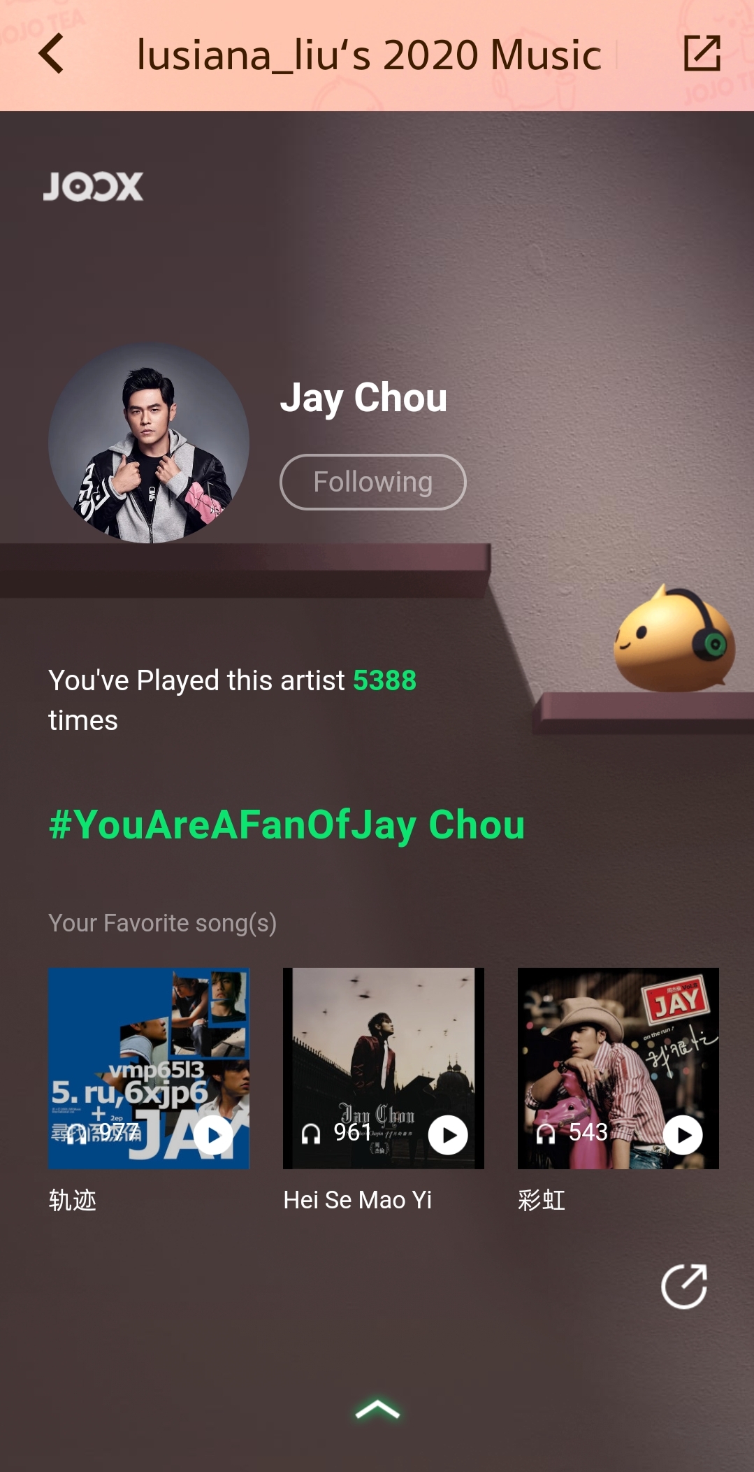 Sesungguhnya statistik ini memperlihatkan kebohongan. HAHAHAHA… Karena saya sebenarnya tidak mendengarkan lagu-lagu tersebut, saya tidur. HAHAHA… Dan saya bukan fans Jay Chou, tapi kebetulan 3 lagu itu memang lagu favorite […]